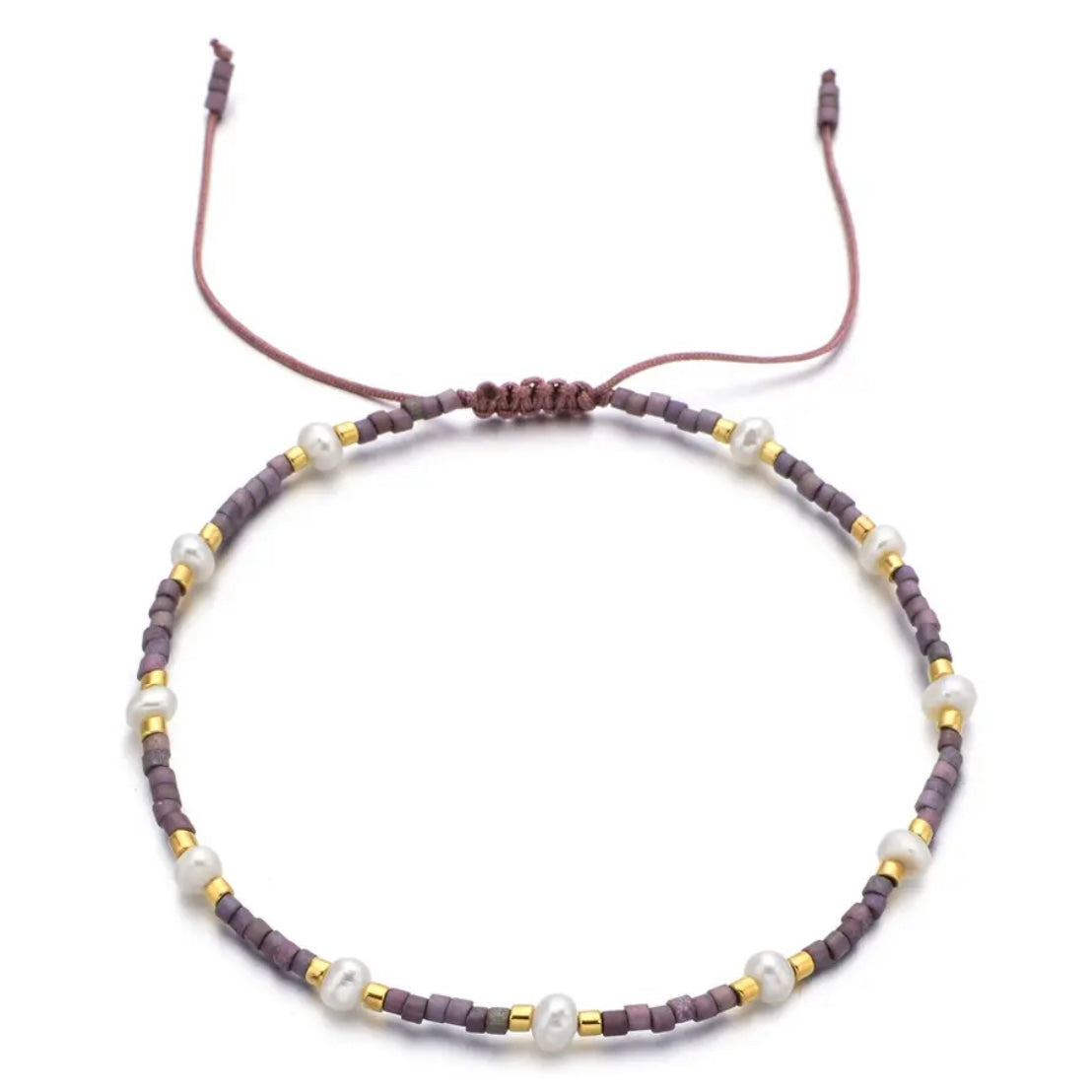 Handcrafted with miyuki, freshwater pearls, and gold plated beads. Water resistant. Adjustable to any size wrist.