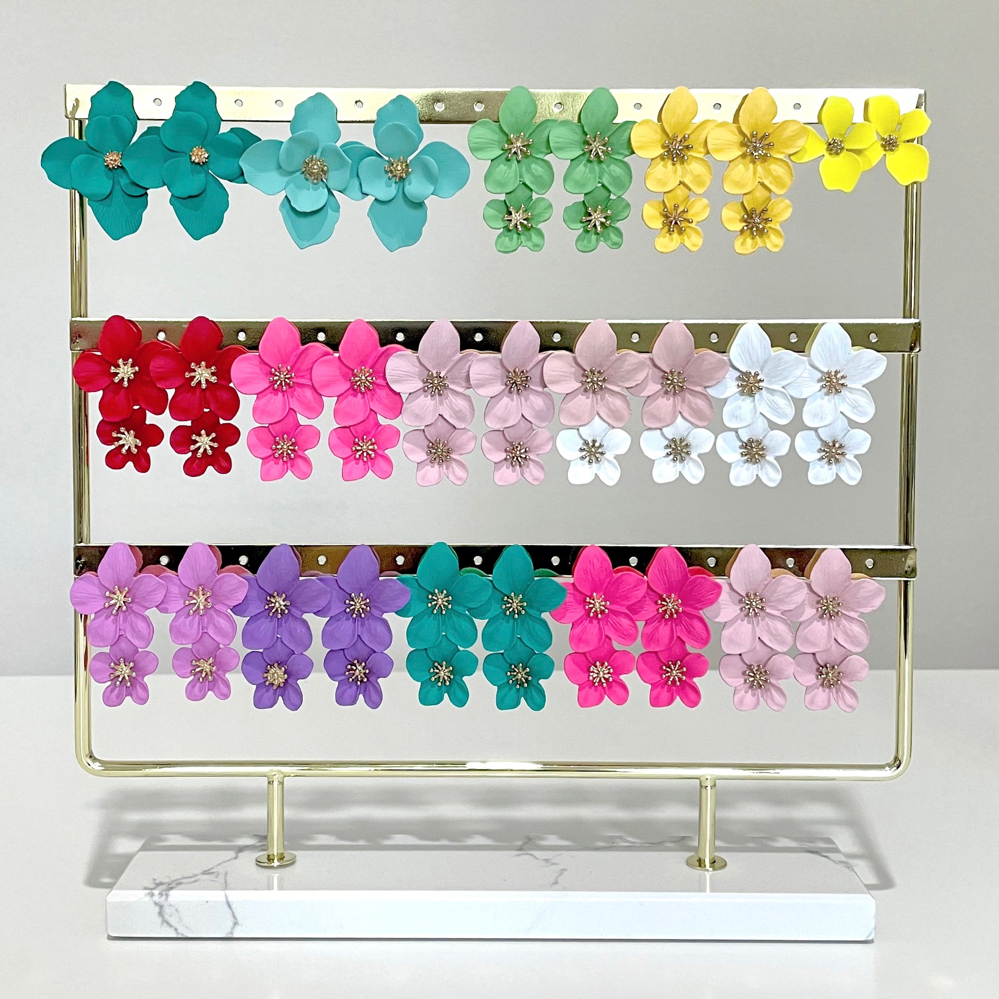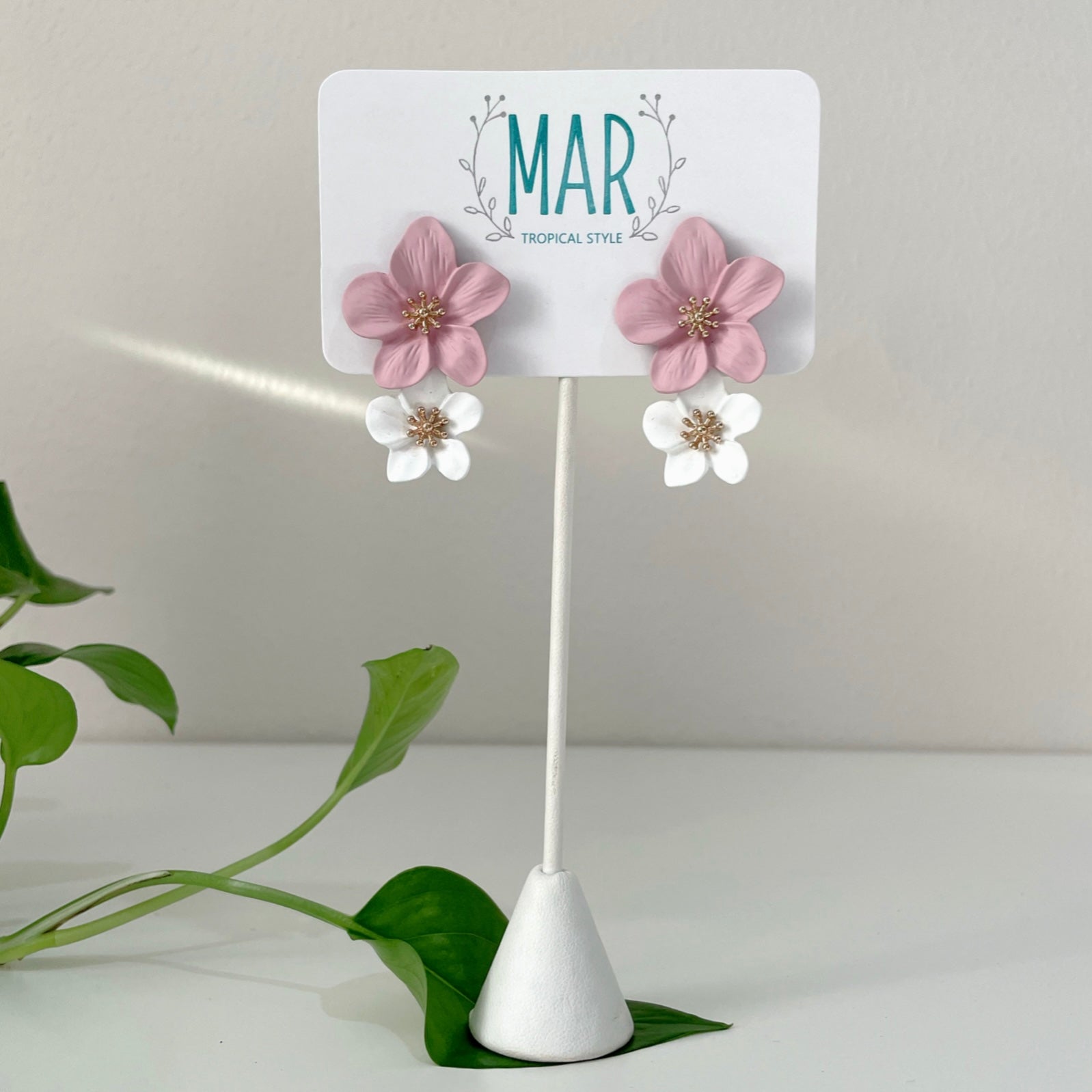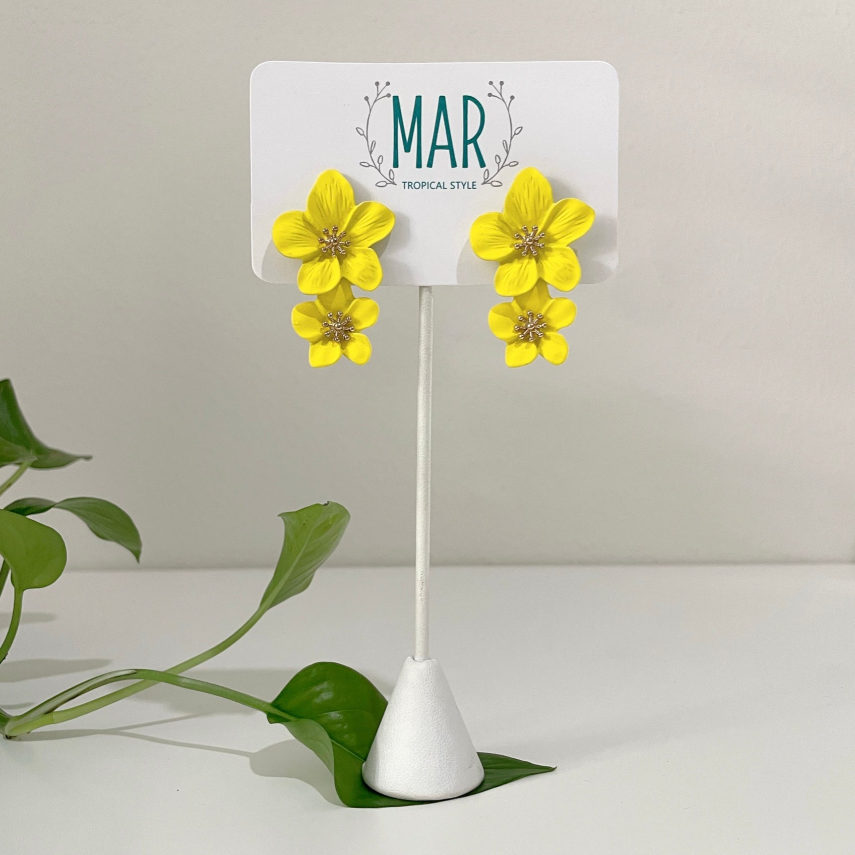 Handmade in resin with gold plated details. Two Flowers 4.5 cm Maxi 7 cm.