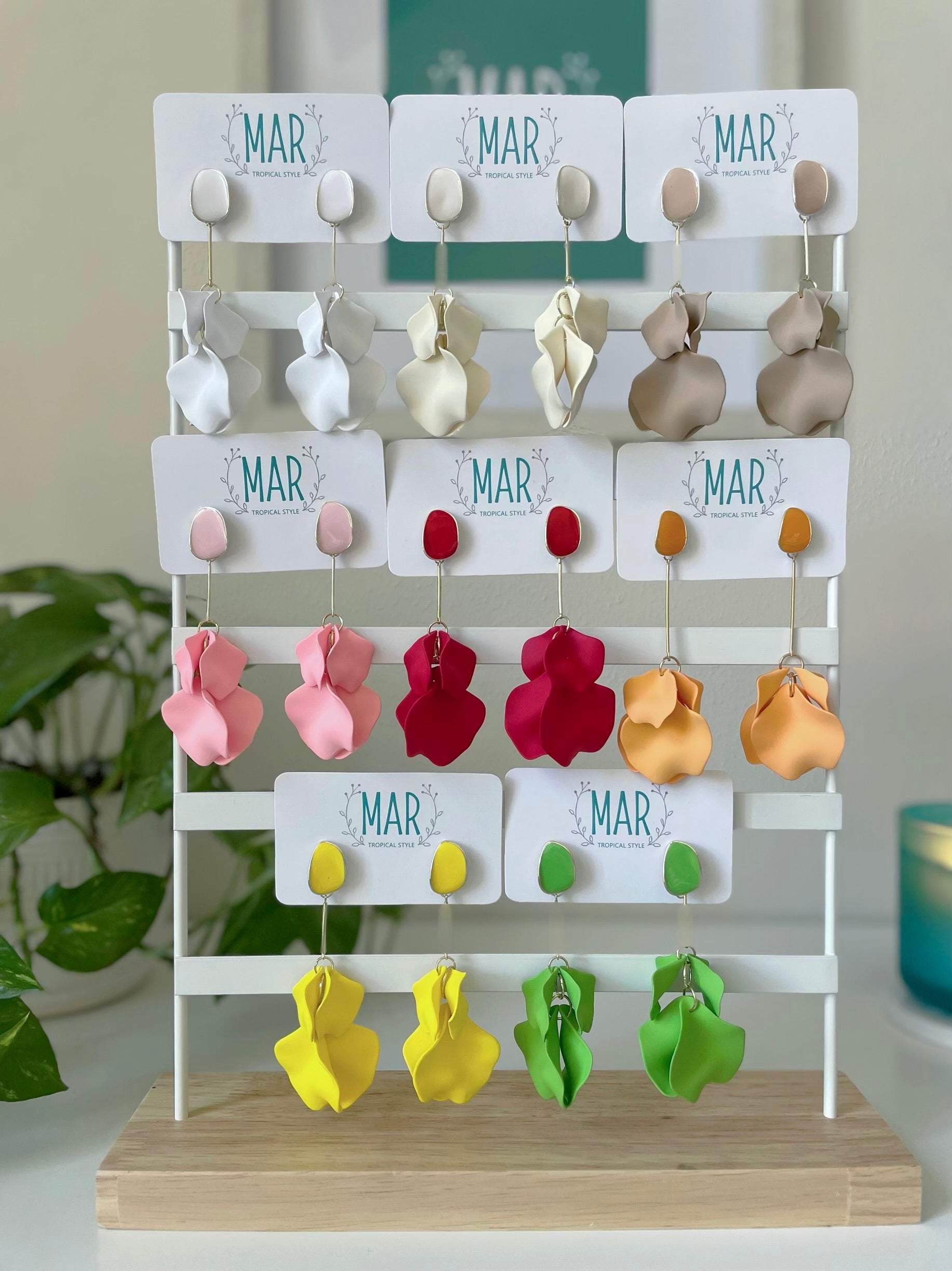 Handmade in acrylic with gold plated details. Very light earrings but statement. 10 cm